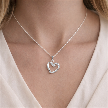 9 ct white gold heart pendant w/ 3 pcs 0,005 ct diamonds