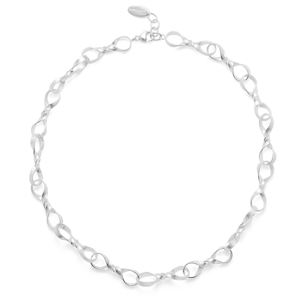 Elegant snoede, sammenlåsende dekorative elementer danner en uimodståelig og karakterfuld designhalskæde. Den kradsematte overfladebehandling gør halskæden til et effektivt blikfang og giver smykket en særlig karisma. Denne halskæde er designet af designeren Nadine Resch med en længde på 47 cm og en forlængelsesmulighed på 2 cm. Fås med matchende øreringe og armbånd. En sensuel, buet form og en gennemgående karakteristisk designsignatur kendetegner freelancedesigneren Nadine Reschs smykkekreationer, der bor i Düsseldorf. Hendes mangefacetterede design giver altid frisk inspiration og gør oprør mod nutidens ensartethed. Alle bastian inverun smykker leveres inklusive matchende smykkeemballage. Mål: Længde: 47 cm Forlængerkæde: 2 cm Længde af et led: 3,2 cm