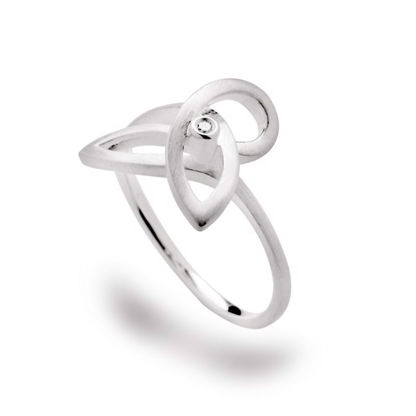 En diamantring som ingen anden: Et gennemgående karakteristisk formsprog kendetegner denne højkvalitets designersmykkering (designet af Sabine Brandenburg-Frank) lavet af mat 925 sterling sølv med diamant (0,02ct). De filigrane, romantiske og på samme tid dynamiske linjer i kombination med ringens højkvalitets, solide udførelse gør den til ethvert outfits højdepunkt. Den freelance-uddannede designer Dr. fra Pforzheim. Sabine Brandenburg-Frank skaber smykker, der er moderne og lige så tidløse. Designeren Brandenburg-Frank ønsker ikke at efterligne naturlige former, men snarere afspejle den grundlæggende geometriske struktur. Det karismatiske design og den usædvanlige, kontrastfulde følelse af hendes smykker afspejler den rene livsglæde. De kombinerer særpræg, æstetik og innovation og fremstår spændende rolige. Alle bastian inverun smykker leveres inklusive passende smykkeemballage. Dimensioner: Bredde på ringbåndet: 1 mm Ringhoved: længde 17 mm, bredde 15 mm