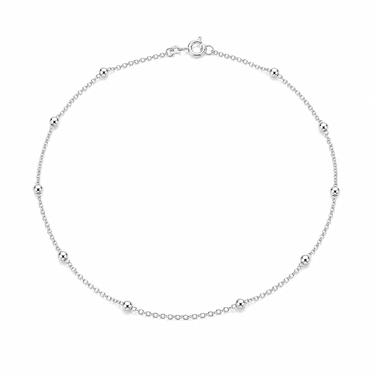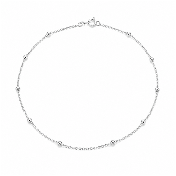 Ankel kæde i rund anker med kugler i sterling sølv, 25-27 cm
