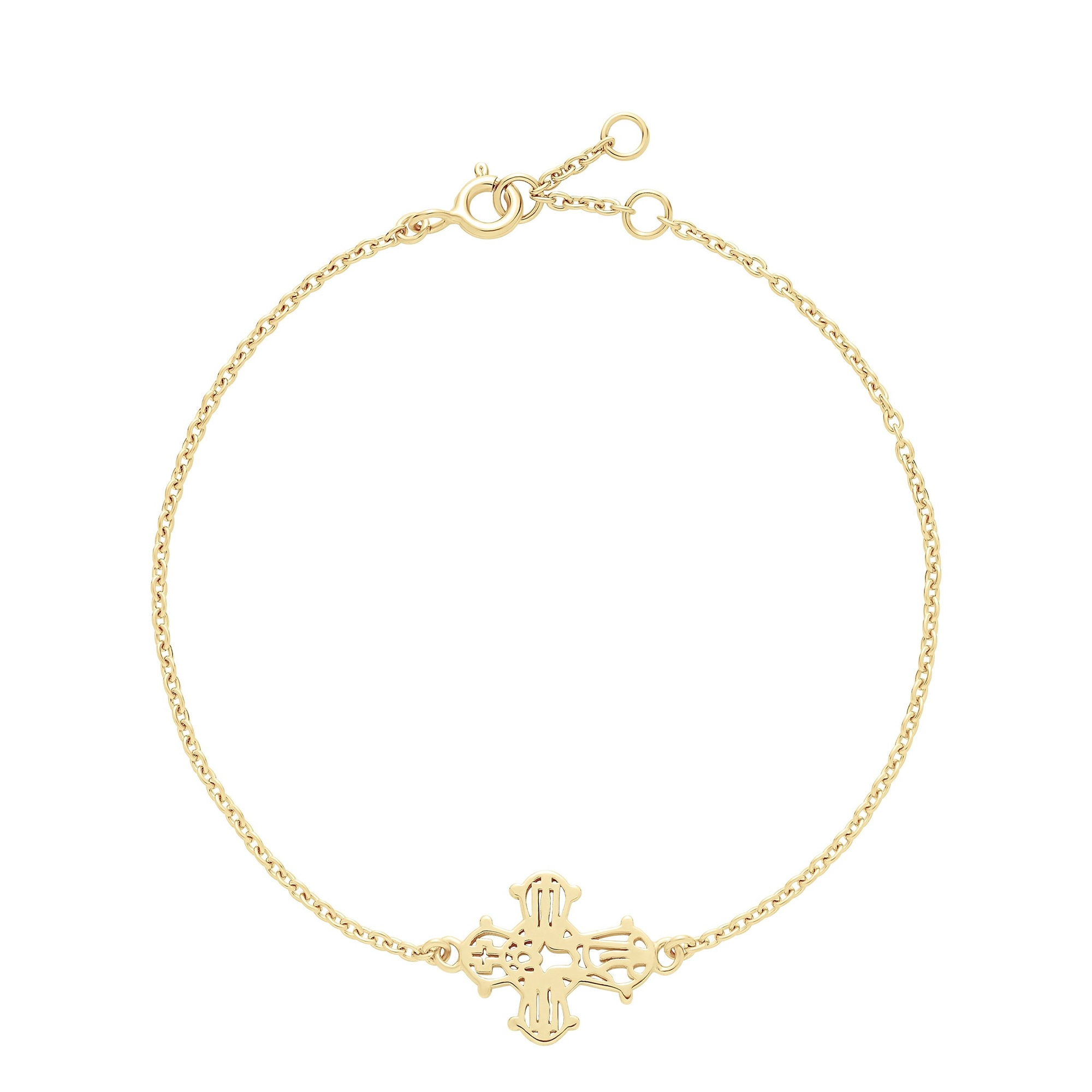 This refined bracelet pairs seamlessly with both traditional and contemporary attire, making it ideal for ceremonies and special events. The polished chain and secure clasp mechanism ensure the piece stays perfectly positioned throughout any occasion, while the ornate cross pattern adds distinction.