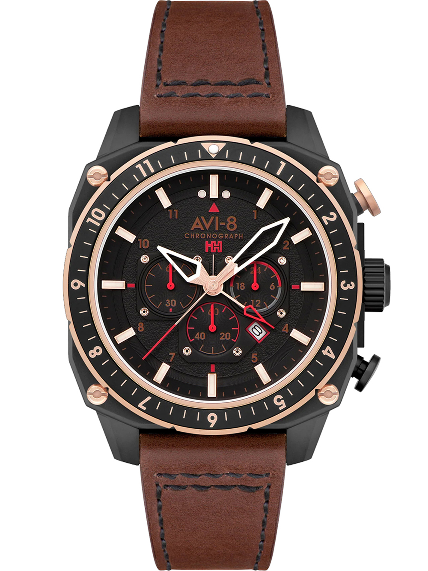 AVI-8 AV-4100-09 Mens Watch Hawker Hunter Dual Time Chronograph 43mm 5ATM Wristwatch