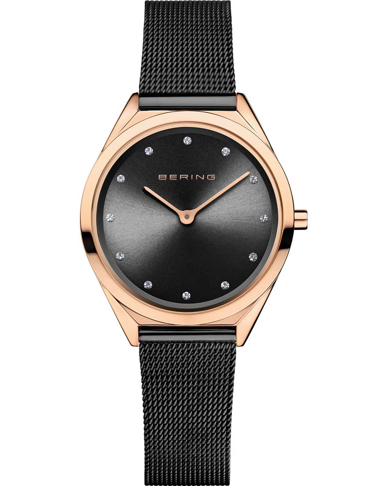 Part of Bering's distinguished collection, this classic ladies' watch exemplifies refined minimalism. The gradient black face creates a sophisticated backdrop for the rose gold-toned case, while the fine mesh strap ensures comfortable all-day wear. Perfect for formal occasions, its 31mm case offers an ideal balance of presence and subtlety.