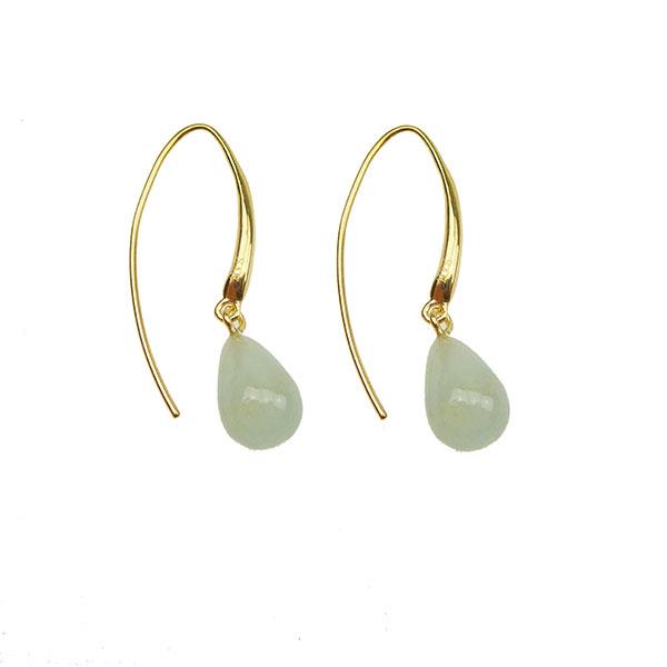 Earrings with gold-plated hook and drop-shaped aquamarine stone, size 12x8 mm.