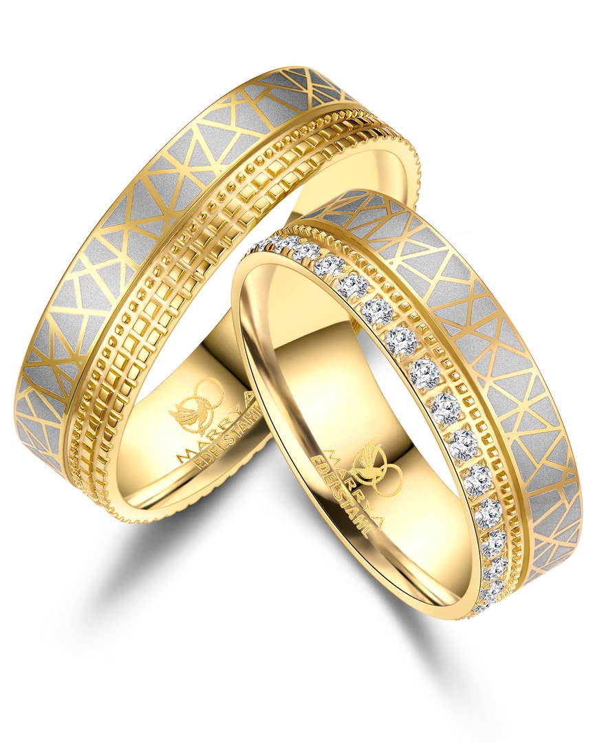 Marrya Rustfri stål med 14 kt forgyldning, weddingrings, ES-37-D+H