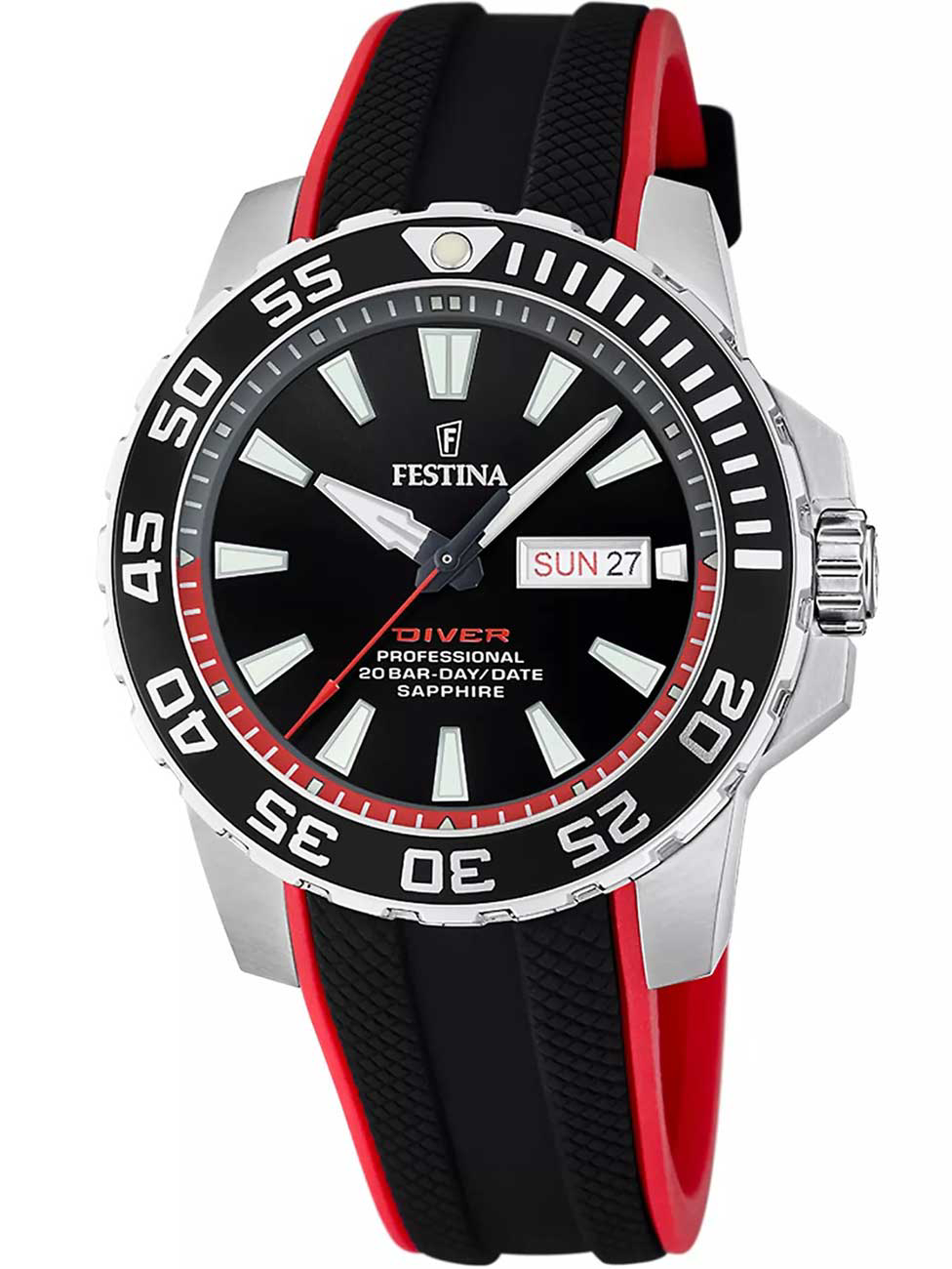Festina F20662/3 Mens Watch Professional Diver Day-Date 45mm 20ATM Wristwatch