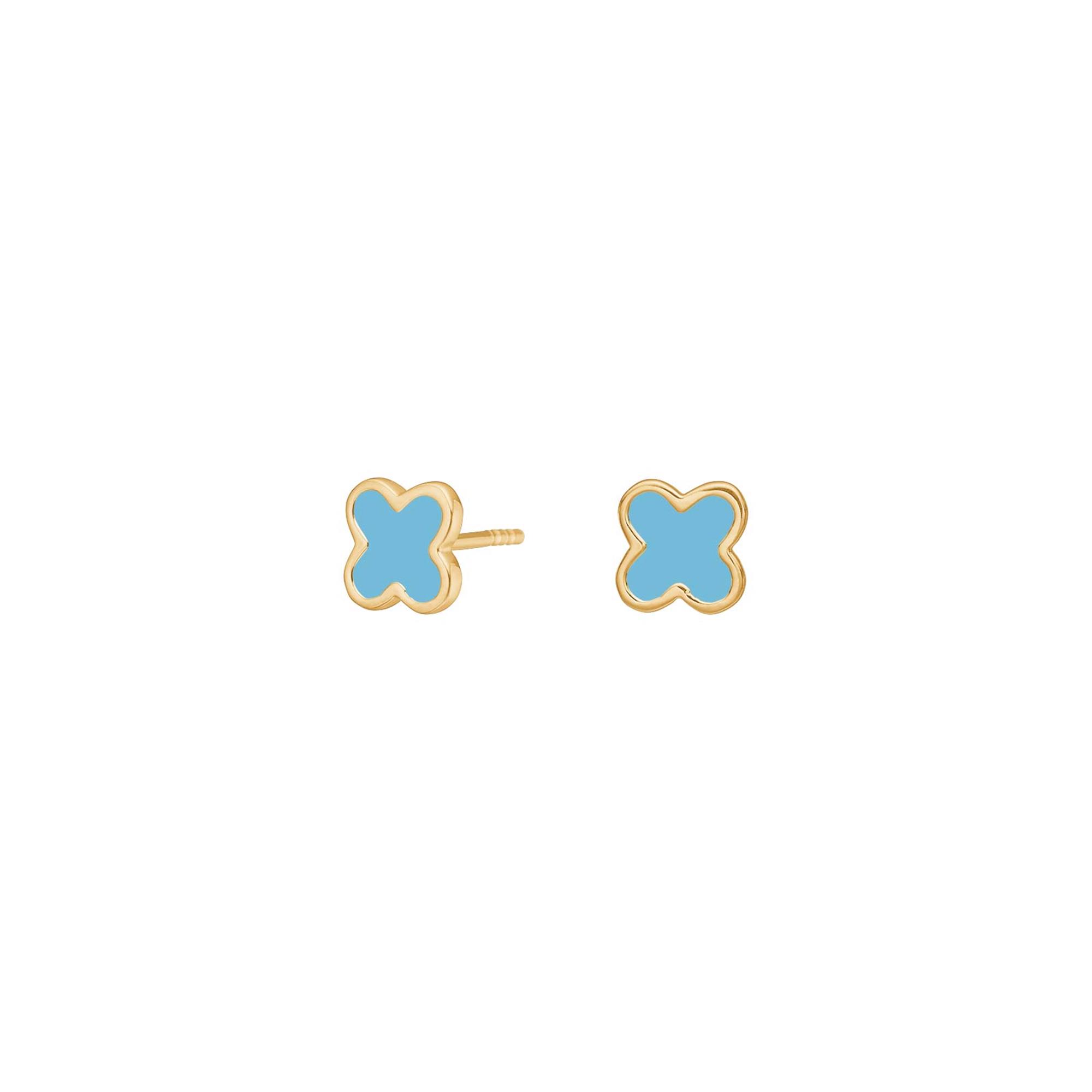 Clover-shaped earrings with blue epoxy center and shiny metallic outline from Noa Kids.