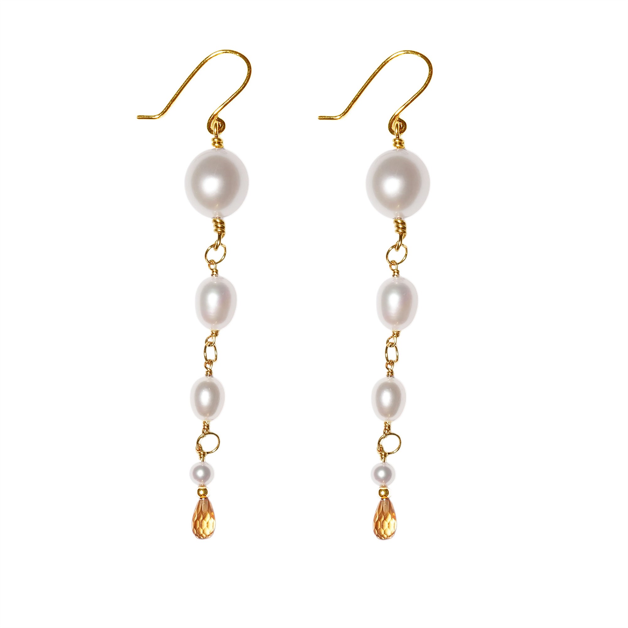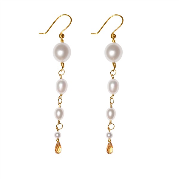 Forgyldt øreringe med ferskvandsperler & citrin Pr.par from San - Links of Joy