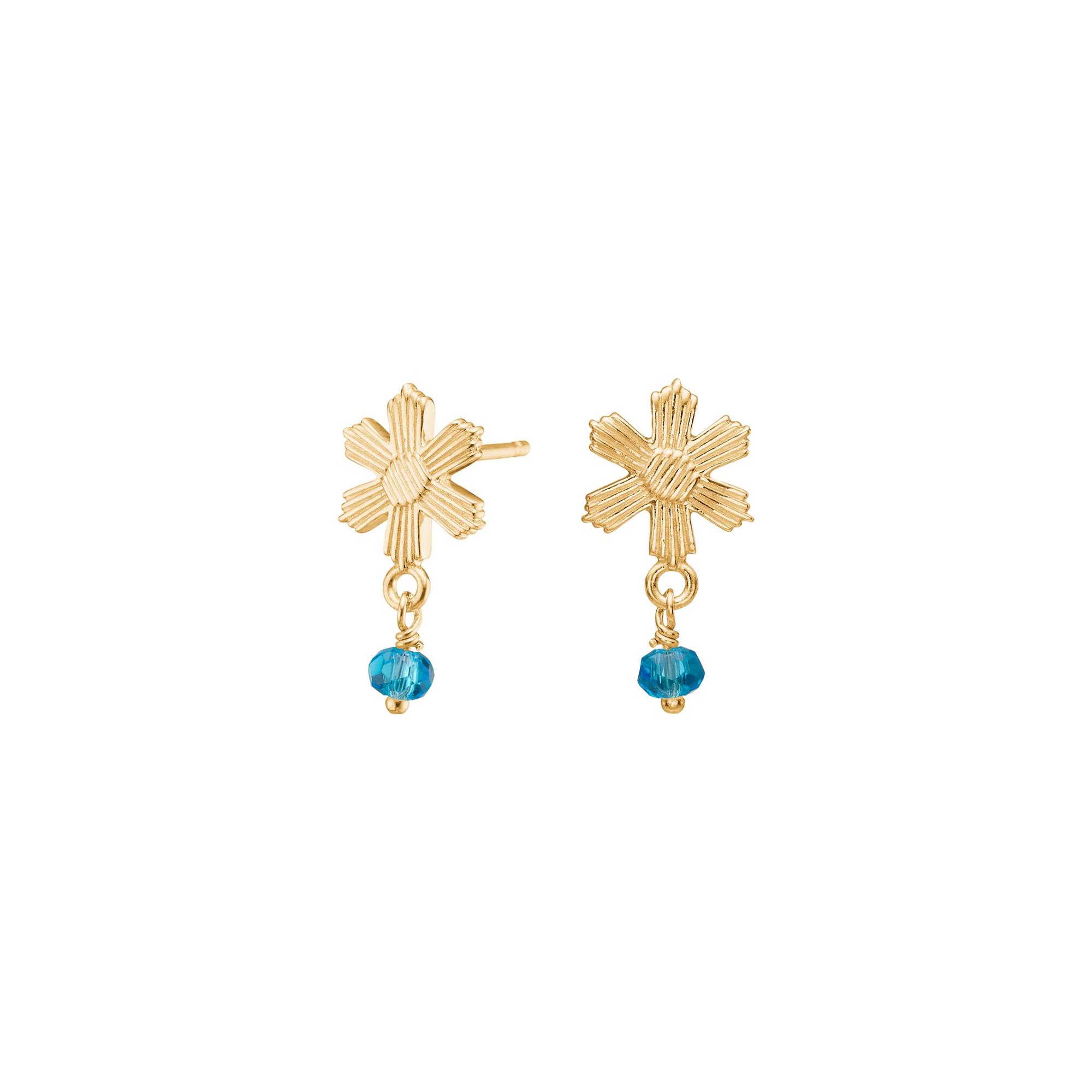 Forgyldt sølv ørestikker aqua blomst BRODERIE52 from Nordahl
