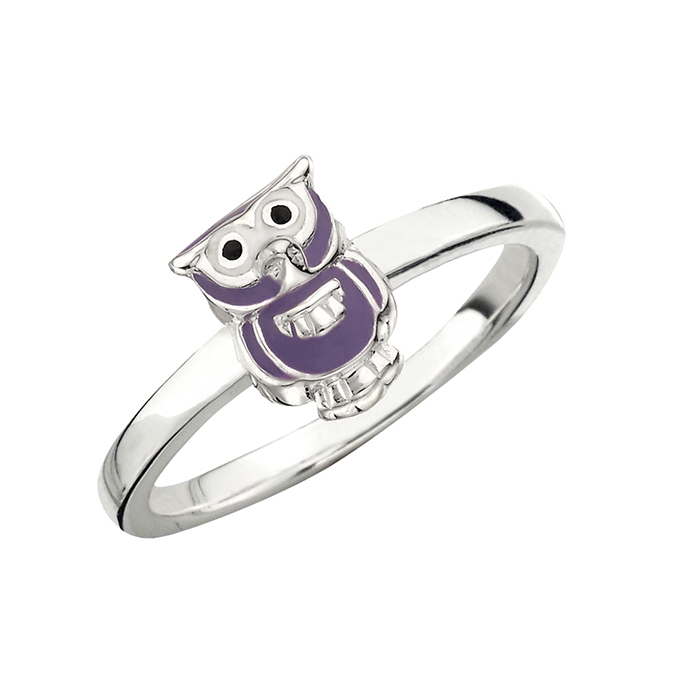 Fun little purple owl finger ring, 8,5 x 6 mm