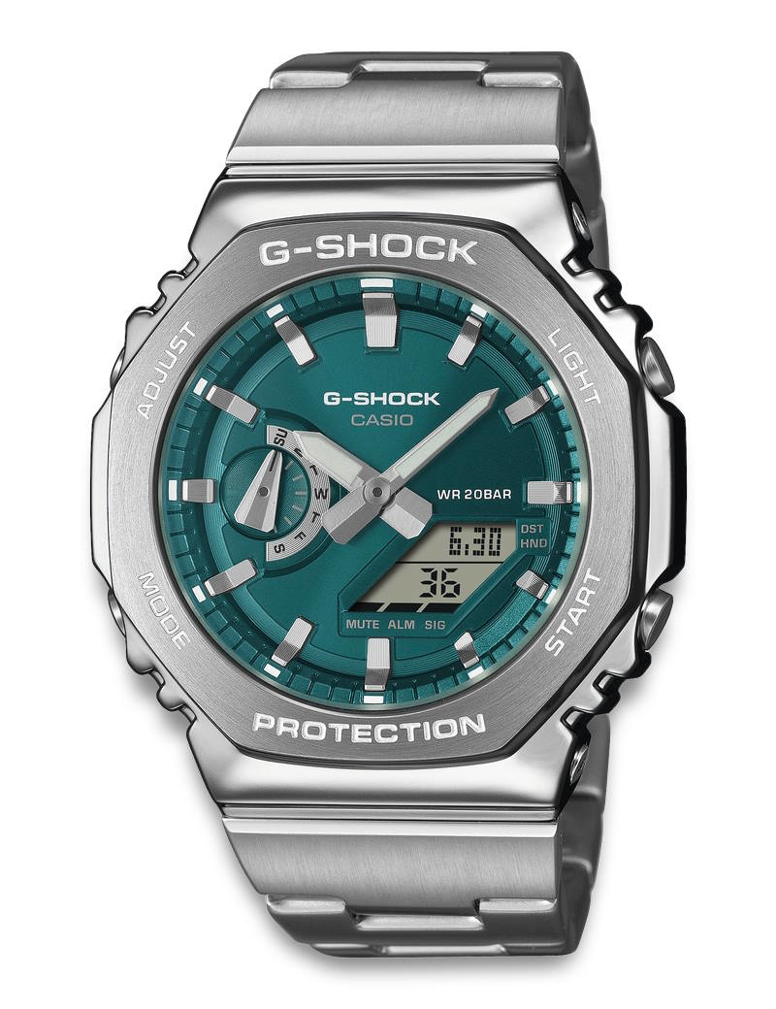 The Casio G-Shock GM-2110D-3A1ER combines iconic design with modern functionality. Featuring an octagonal bezel, green dial, and analog-digital display, it delivers both style and performance.