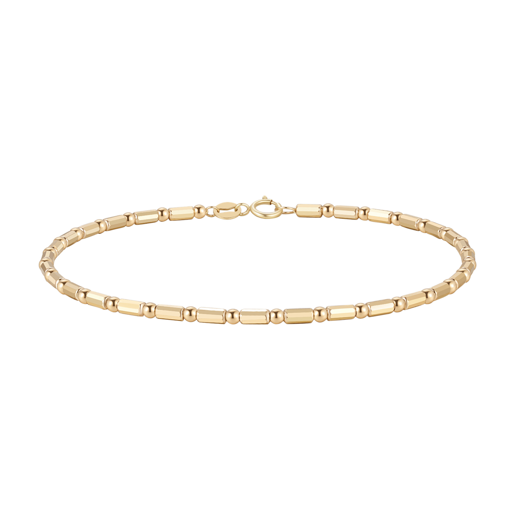 Gold bracelet with cylindrical and spherical links, alternating design, and circular clasp from Støvring.