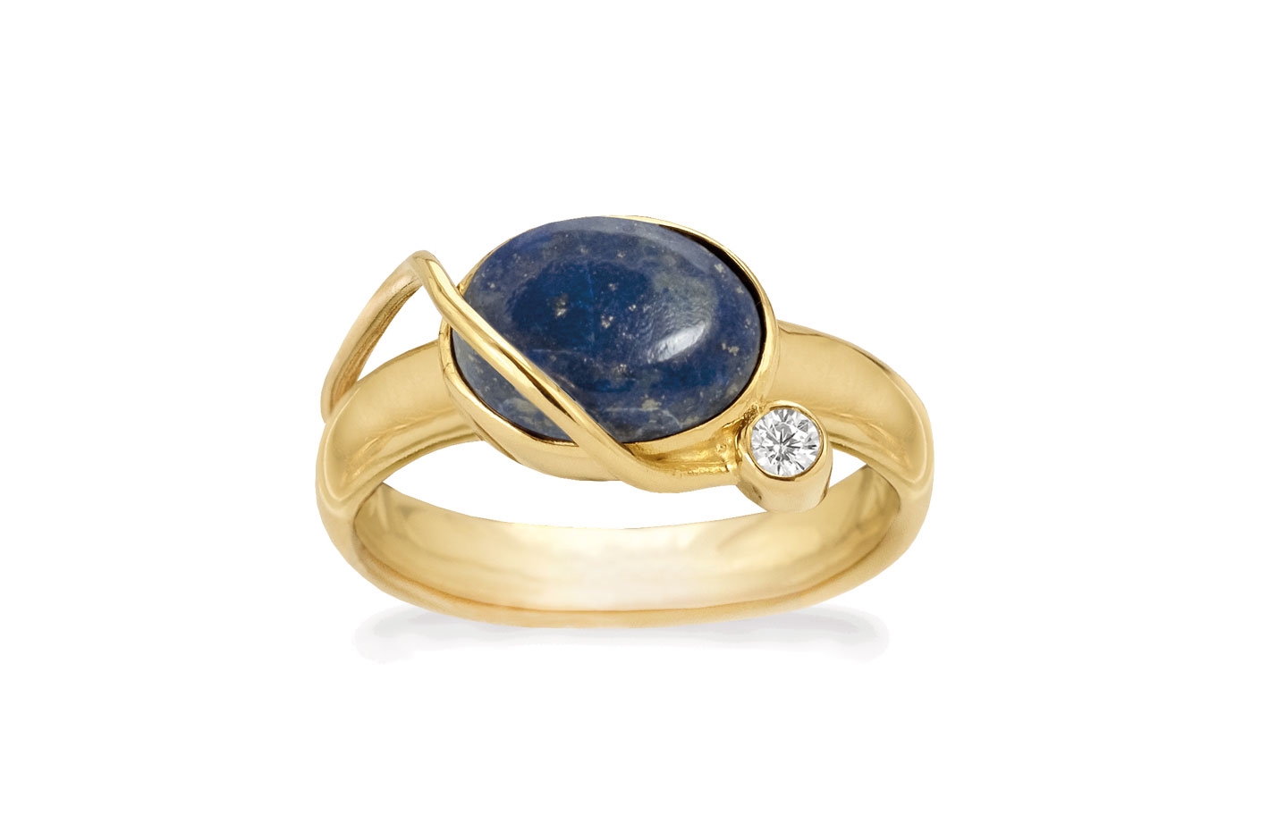 The Forgyldt ring - Starry Night showcases a magnificent 10x8 mm lapis stone, its deep blue hue creating an enchanting centerpiece. The gold-plated sterling silver band features an artistic swirl design that elegantly embraces the stone, making it perfect for formal events and creative gatherings.