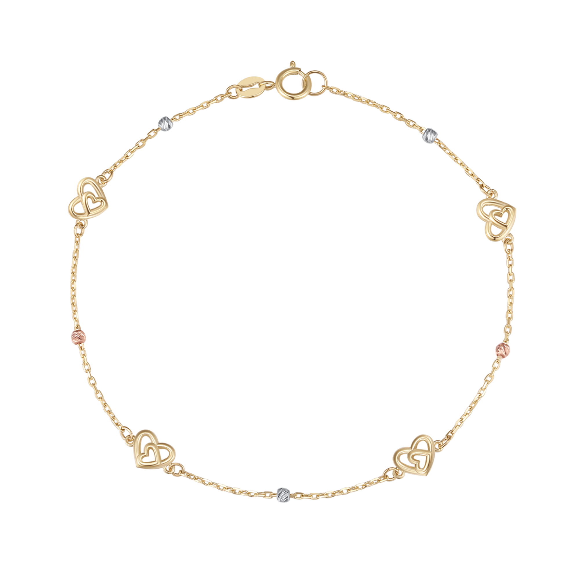 14 kt. guld armbånd dobbelt hjerte med kugle skiftvis.