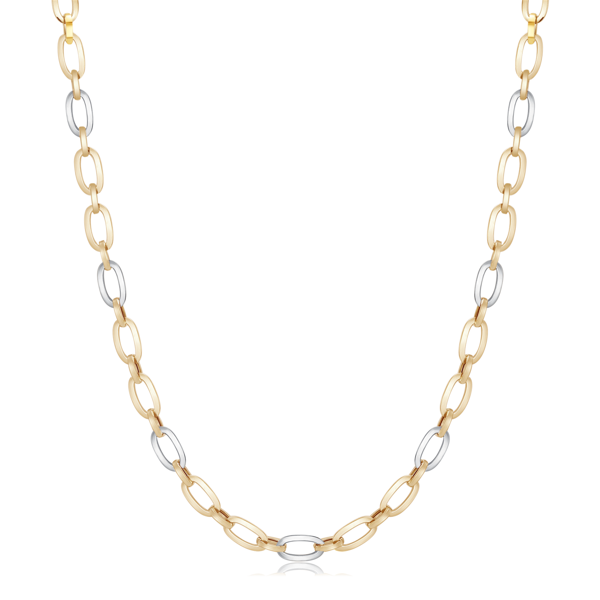8 kt. guld collier stor kæde med hvid og rød guld skifvis. lås er rund cirkel.