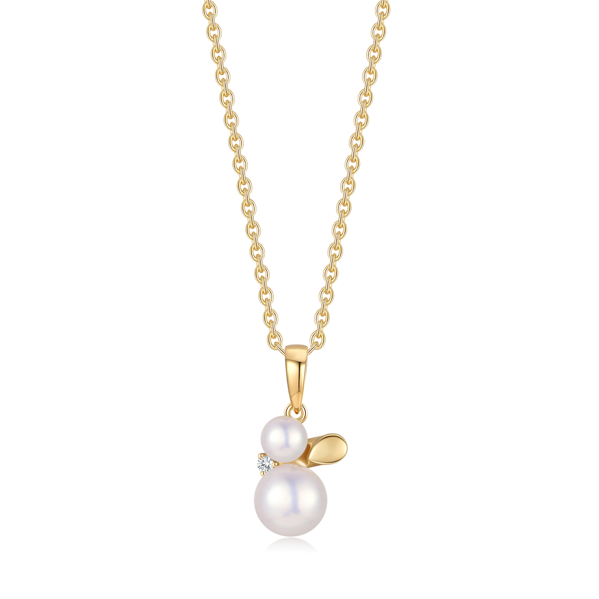 14 kt. guld vedhæng figur med perle og en brillant i den ene side og plade i den anden side.