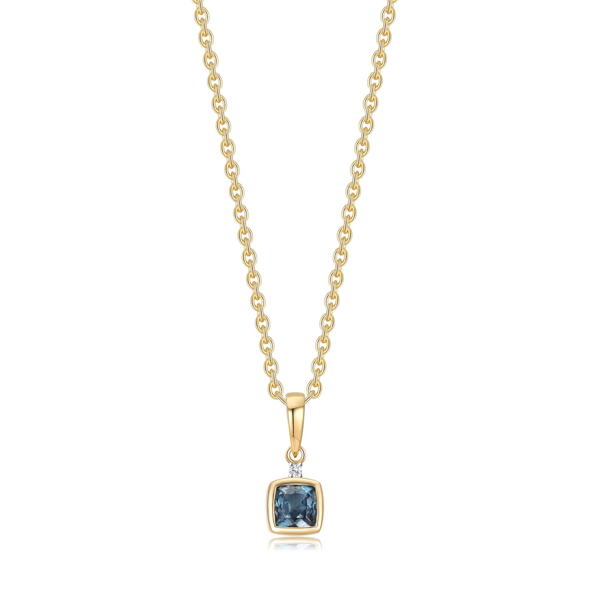 8 kt. guld vedhæng firkant london blå topaz med en syntetisk cubic zirconia på toppen.