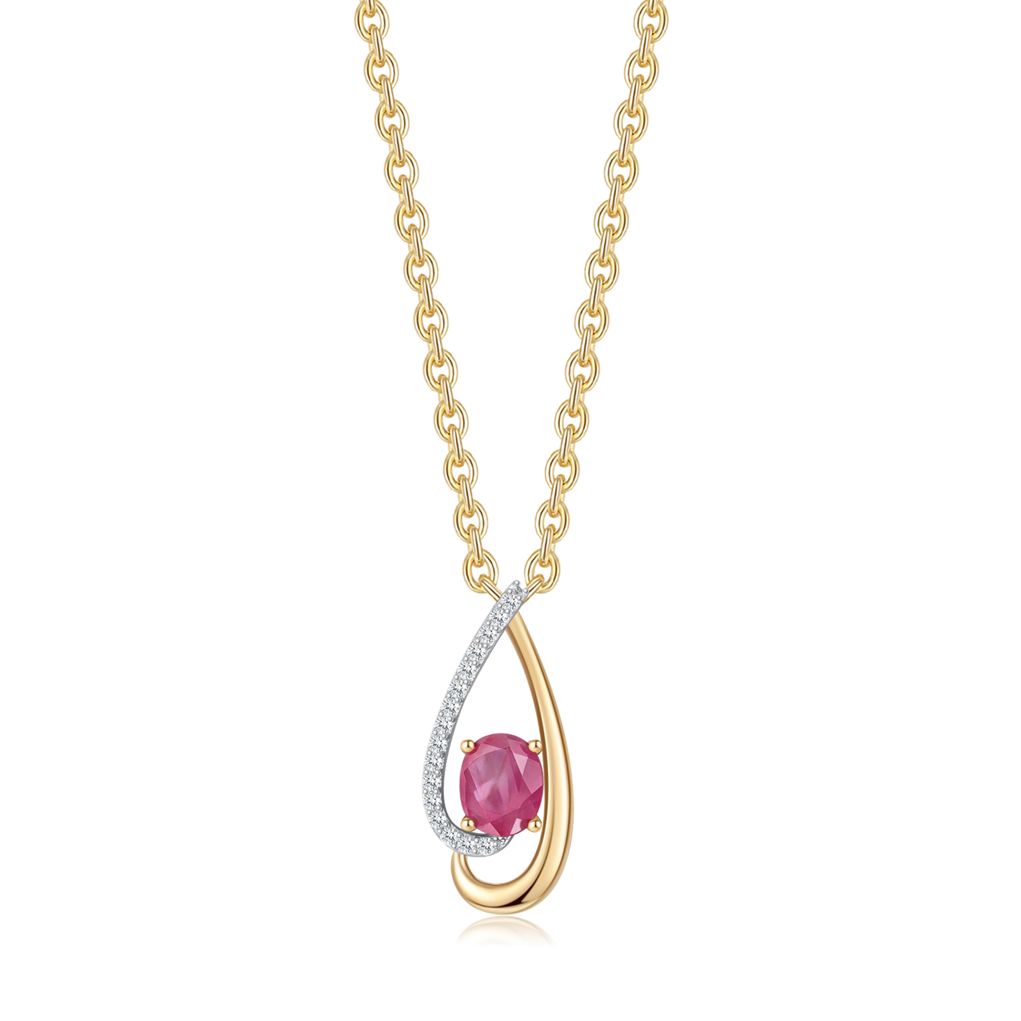 8 kt. guld vedhæng dråbe med rubin og syntetisk cubic zirconia.
