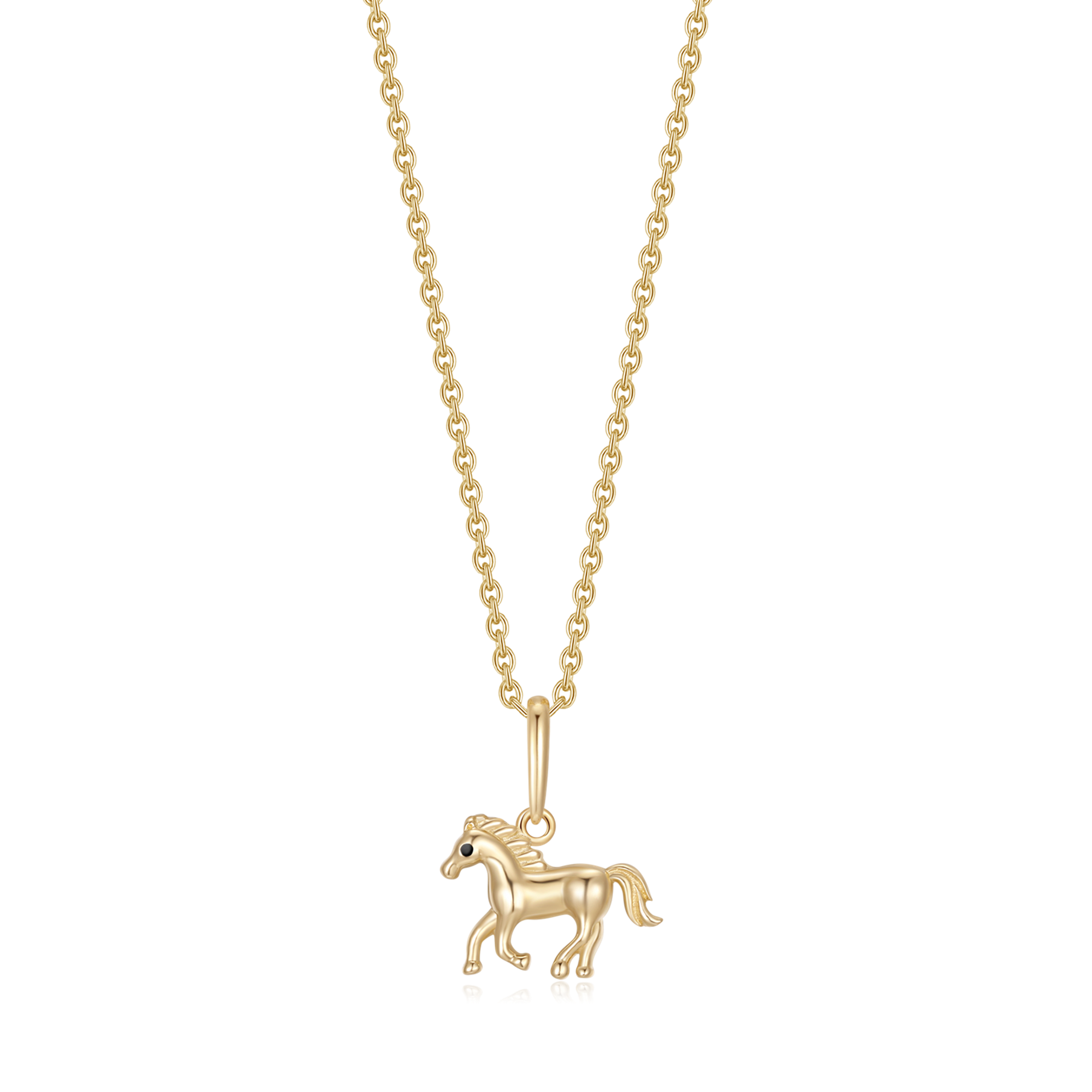 8 kt. guld vedhæng hest med sort øjne.
