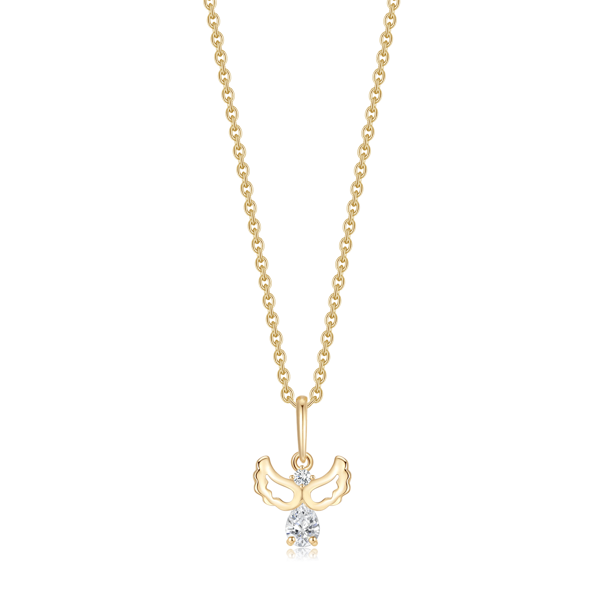 8 kt. guld vedhæng engel med syntetisk cubic zirconia.