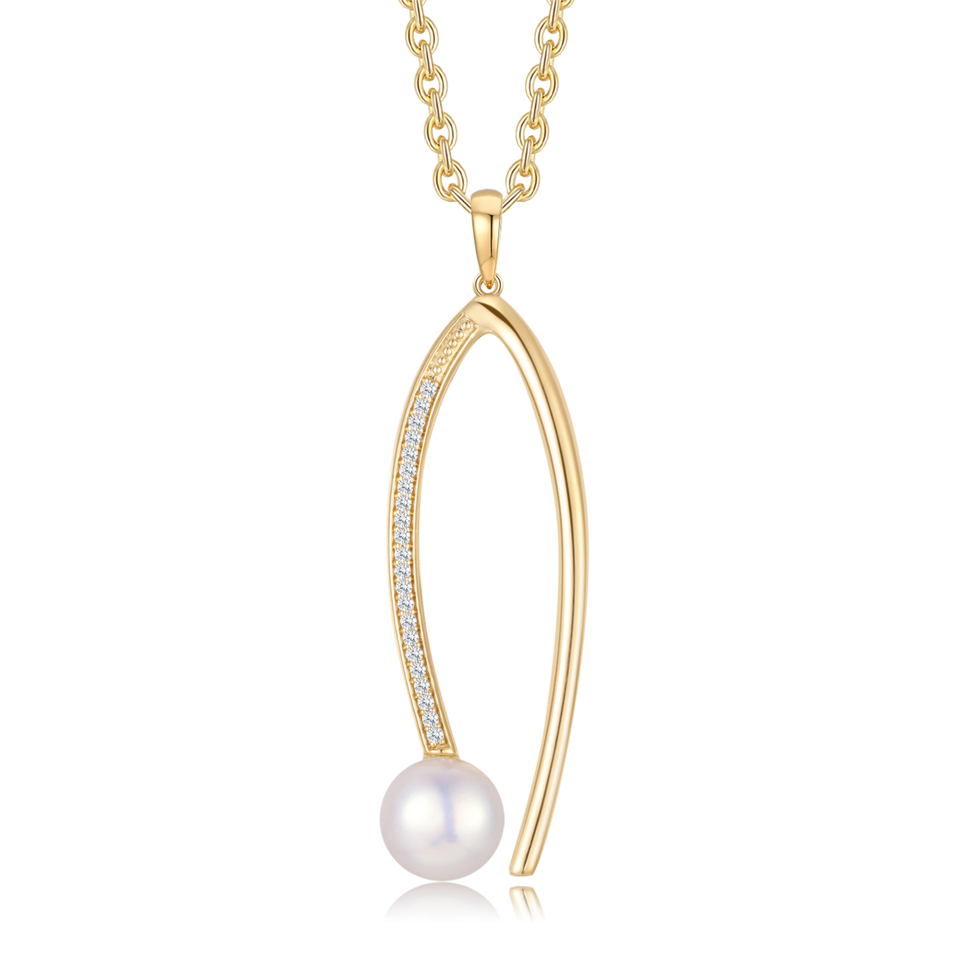 14 kt. guld vedhæng oval bøjle med perle og brillanter i kanten.
