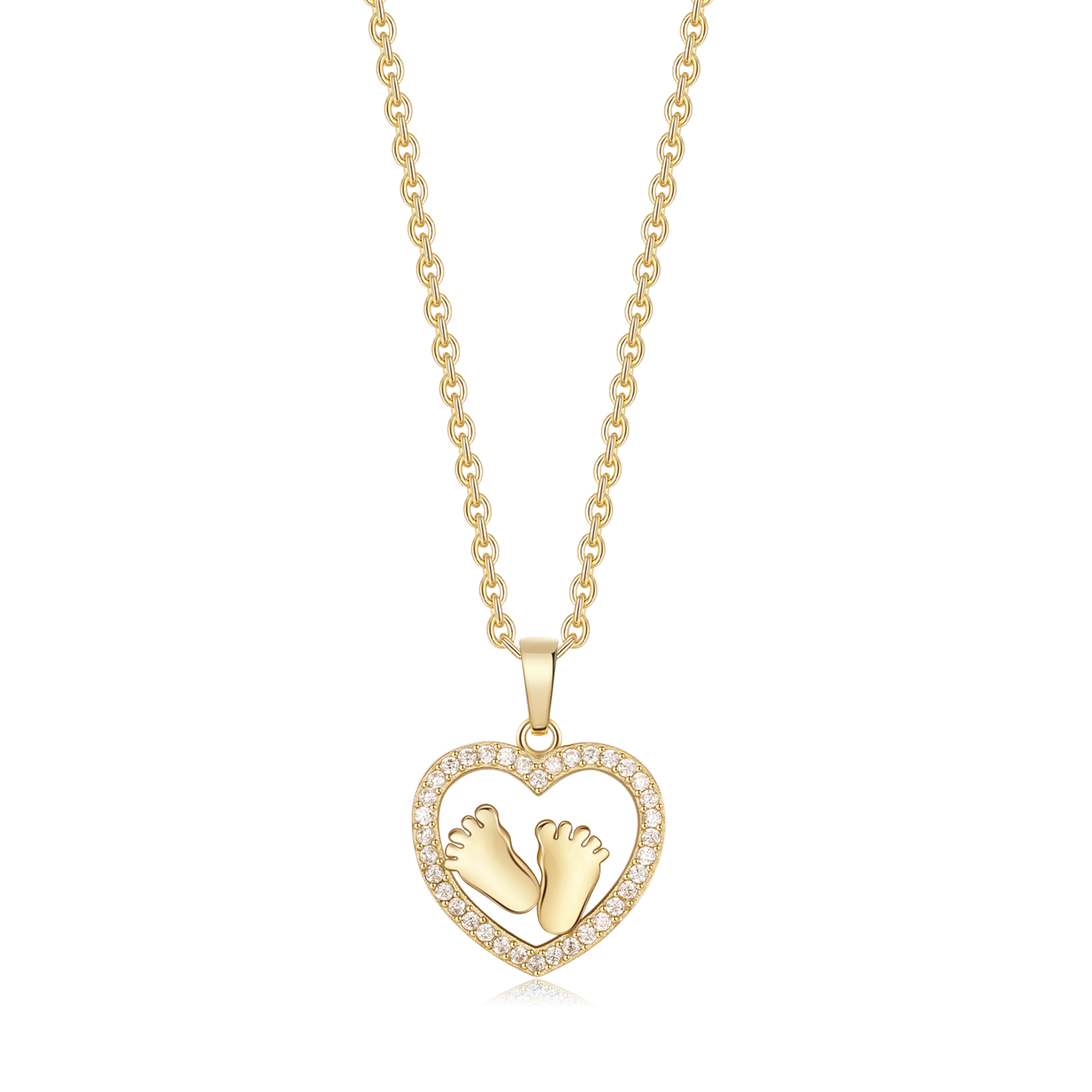 8 kt. guld vedhæng hjerte med fødder og syntetiske cubic zirconia.