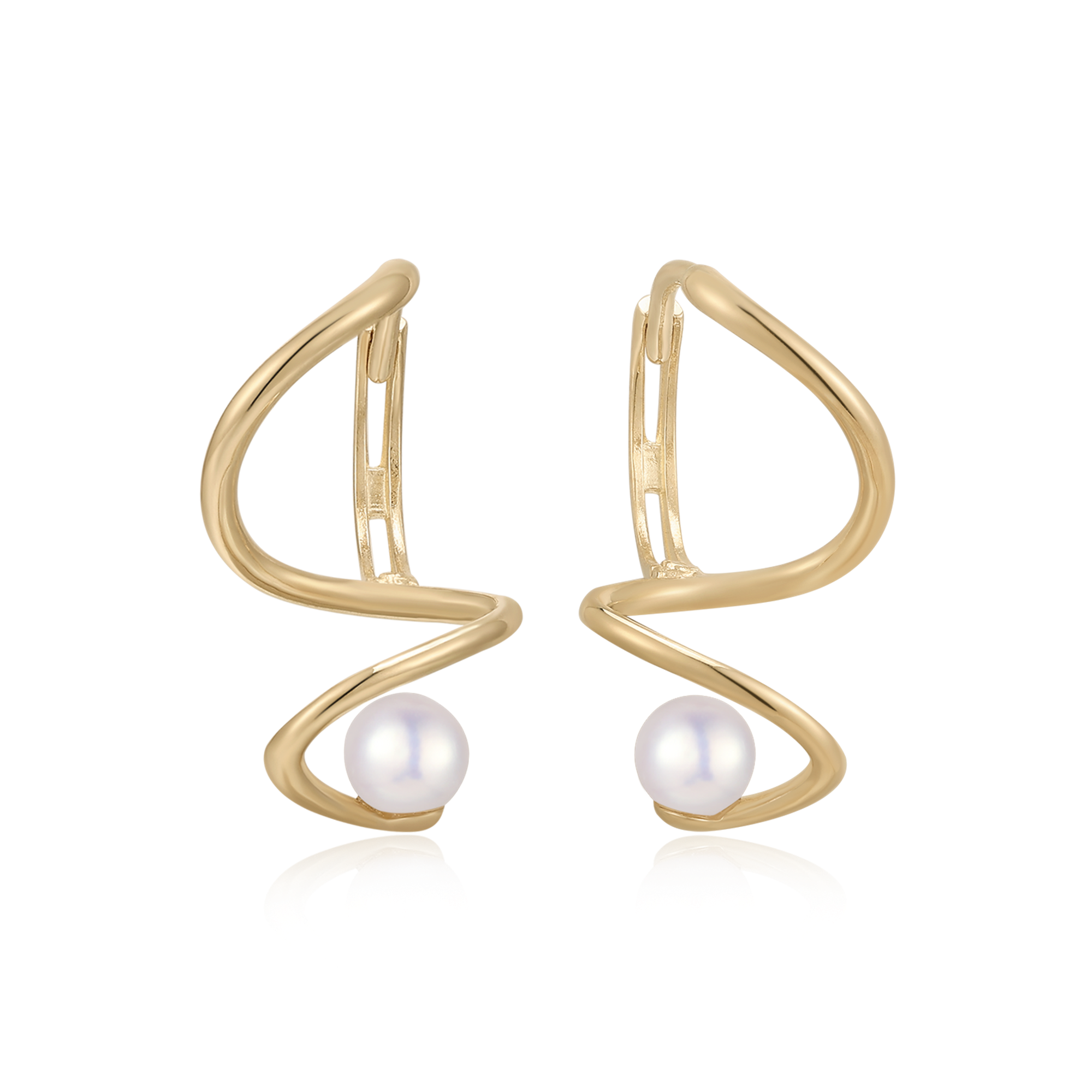 The unique combination of pearls and wavy gold elements creates a versatile accessory that transitions seamlessly from day to evening wear. These earrings make an elegant statement at formal events while remaining subtle enough for daily activities, offering the perfect balance of sophistication and practicality.