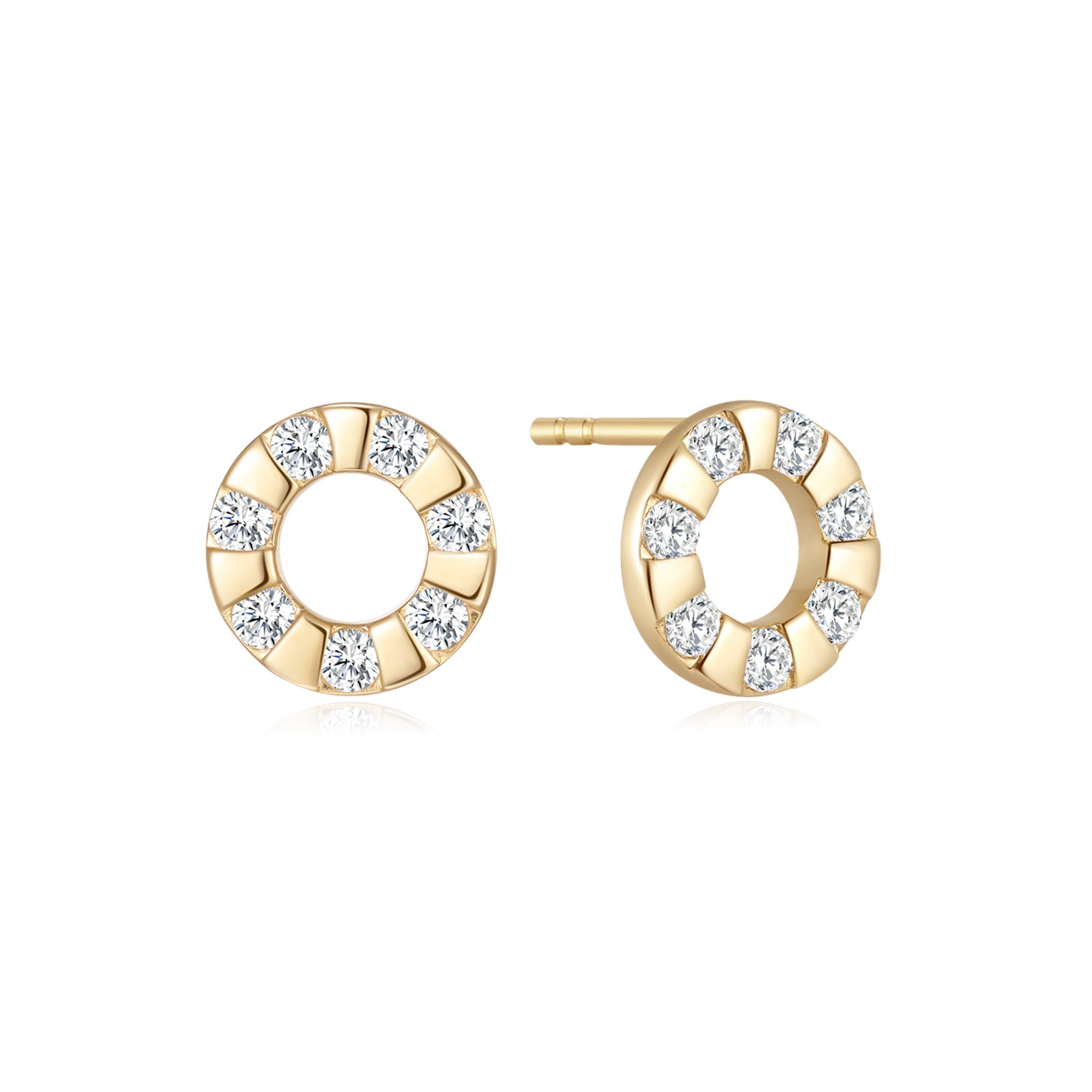 14 kt. guld ørestikker cirkel med 7 syntetiske cubic zirconia rundt om.