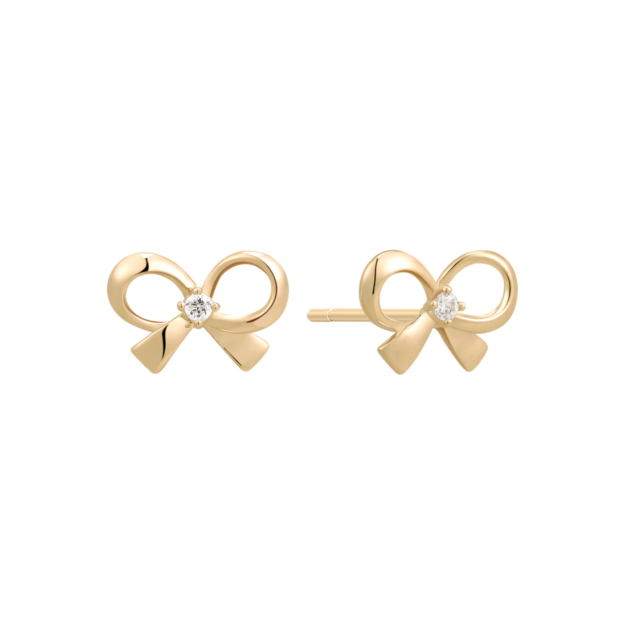 Crafted from exquisite 14kt gold, these Støvring Design earrings showcase a delicate bow design that captures light with its glossy finish. Each piece features a carefully positioned synthetic cubic zirconia, adding a subtle sparkle that elevates the classic design while ensuring durability for regular wear.