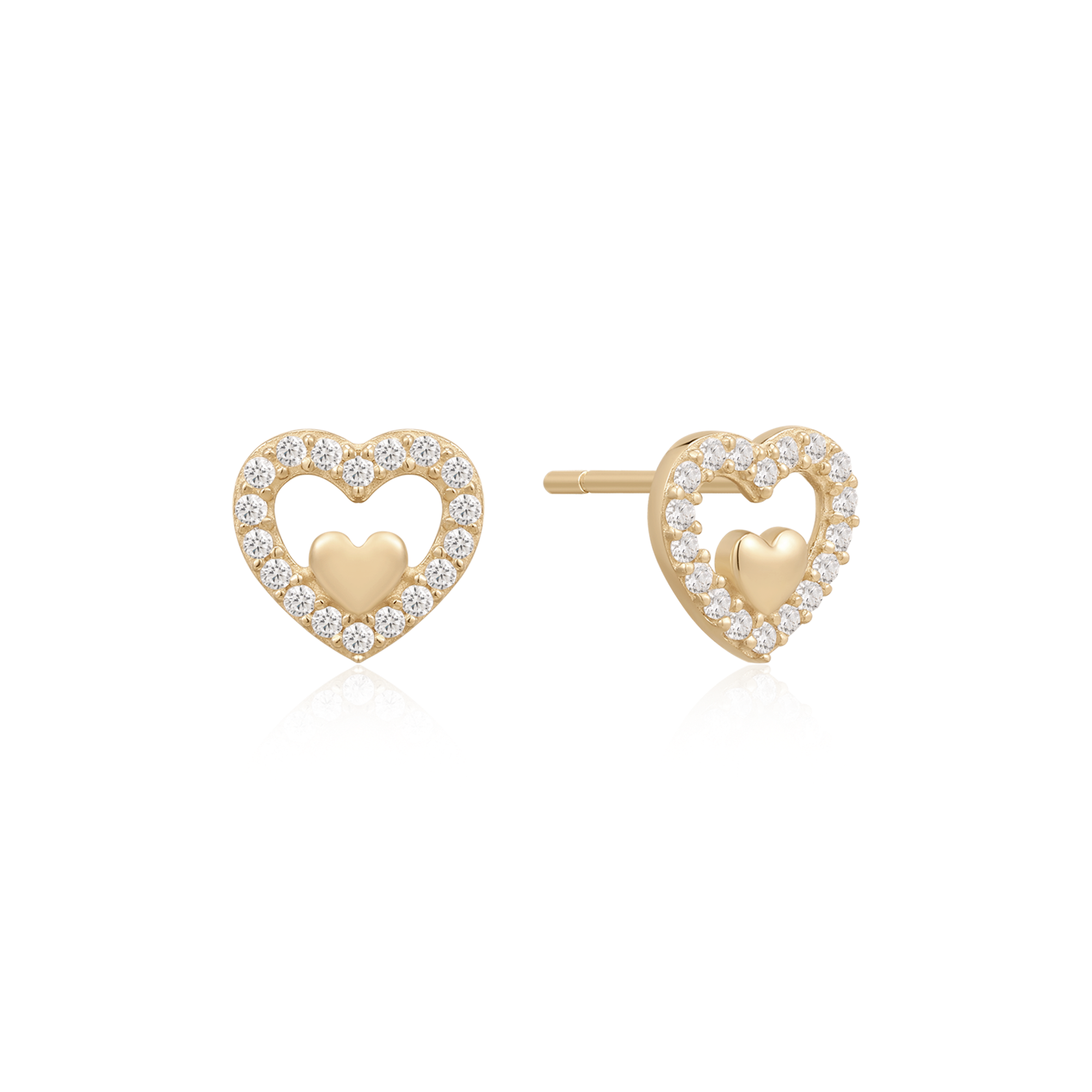 14 kt. guld ørestikker dobbelt hjerter med syntetiske cubic zirconia.