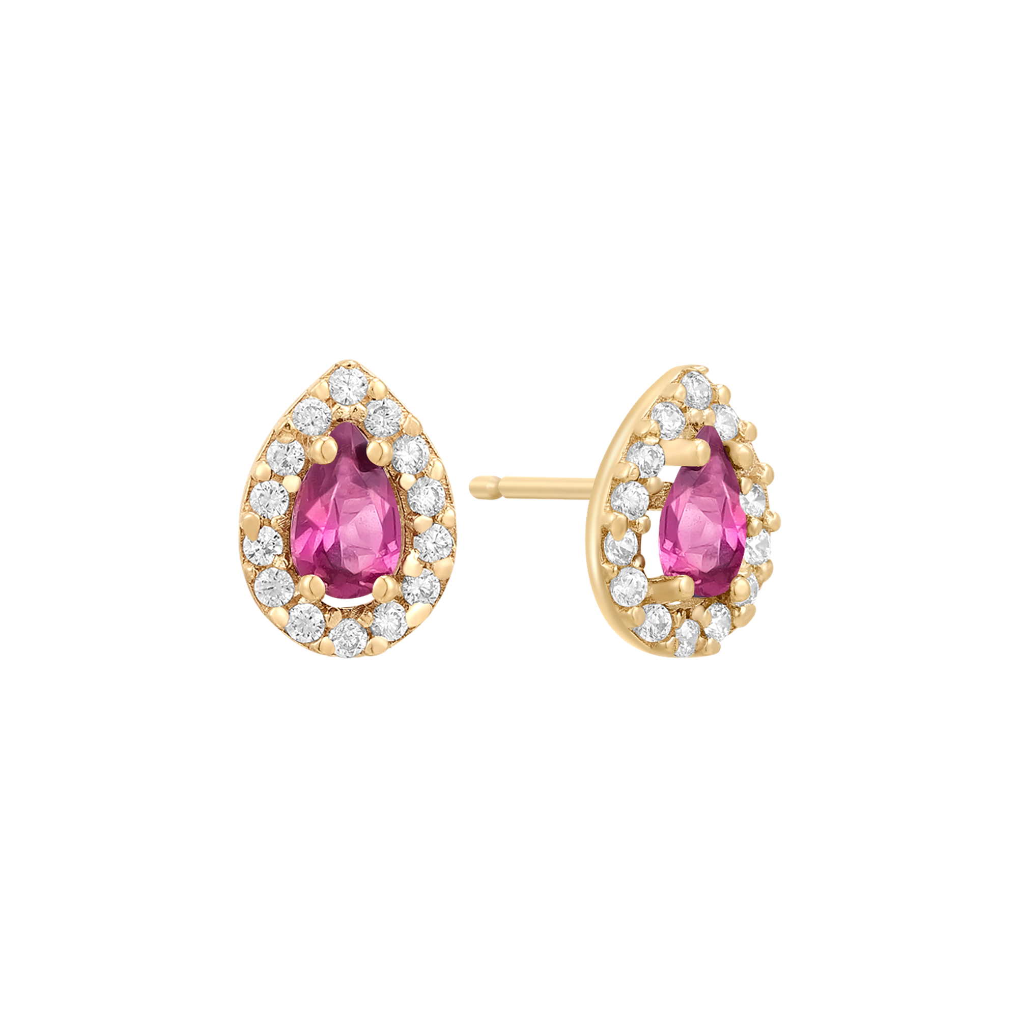 8 kt. guld ørestikker oval ametyst med syntetiske cubic zirconia.
