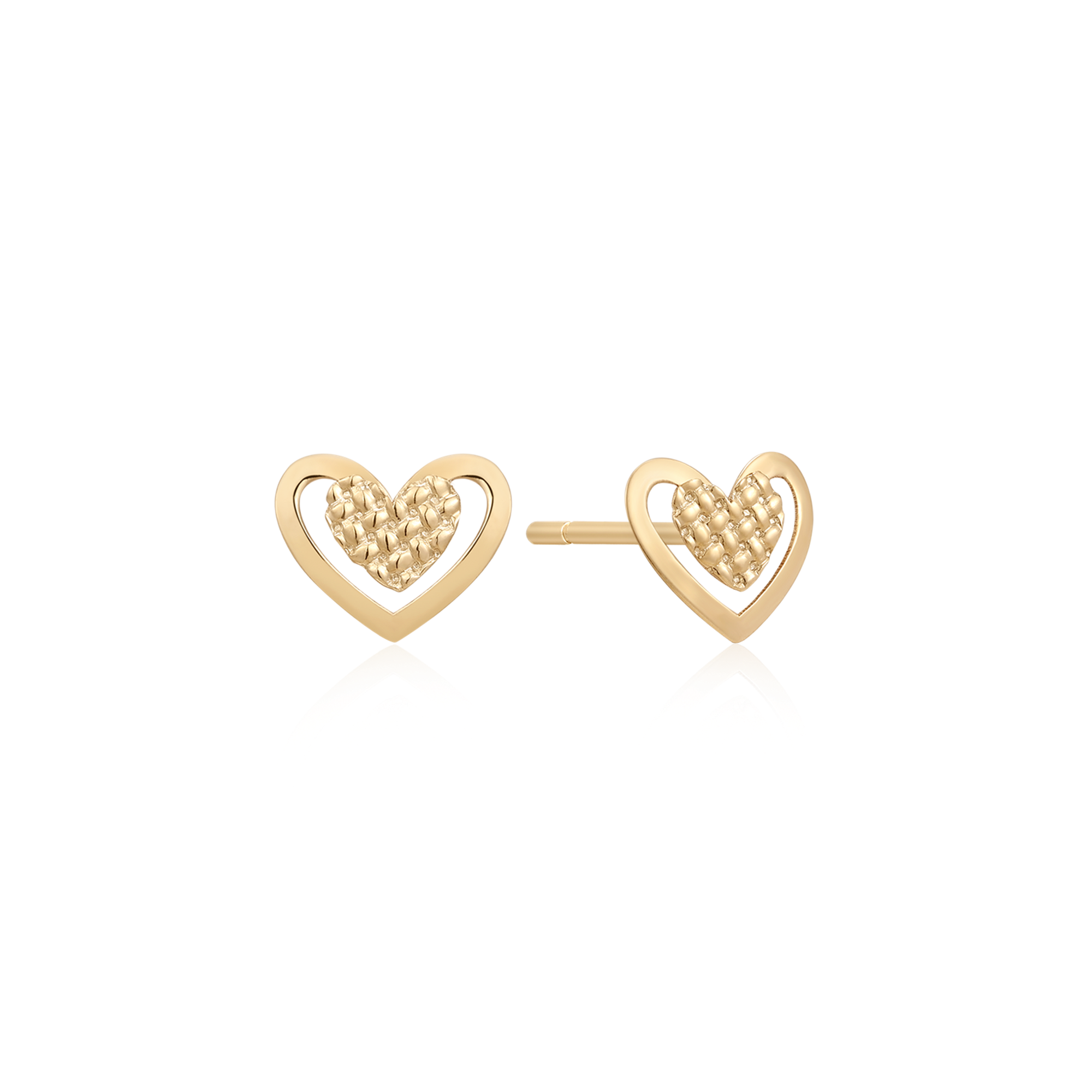 8 kt. guld ørestikker hjerte med syntetiske cubic zirconia.