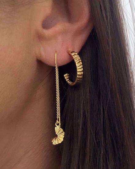 Gold semi-circular hoop earrings with ribbed texture and post fastening, model 11580/F.