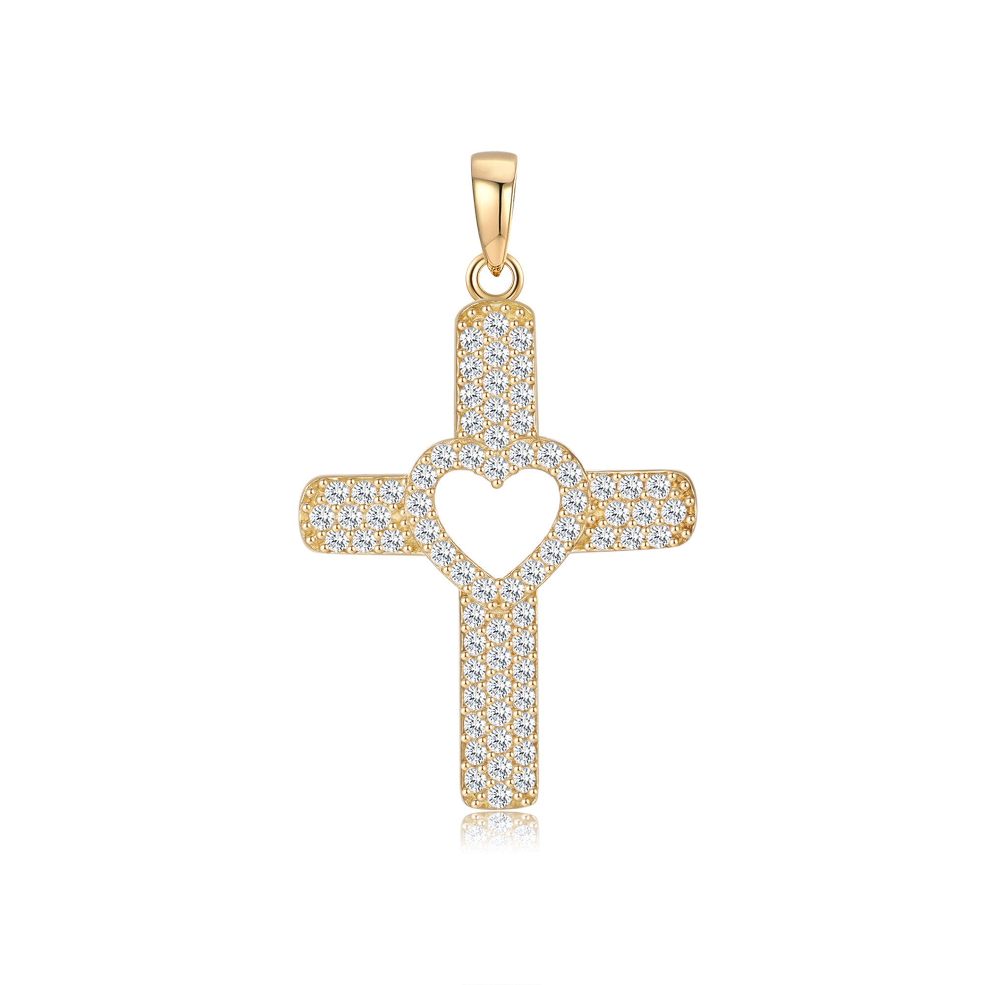 8 kt. guld vedhæng kors med syntetiske cubic zirconia og hjerte i midten.