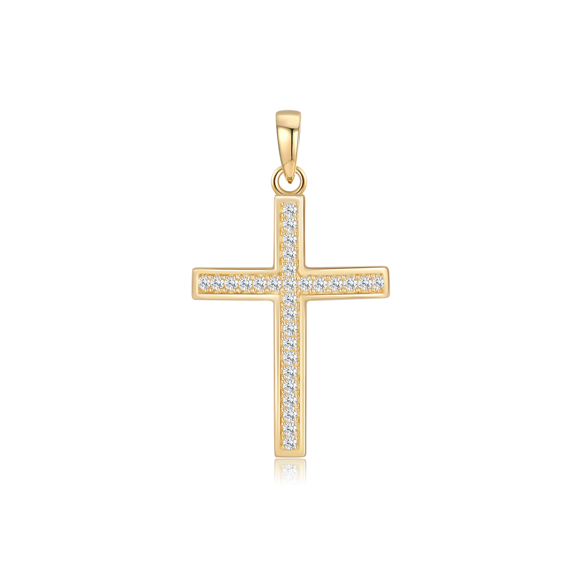 8 kt. guld vedhæng kors med syntetiske cubic zirconia.