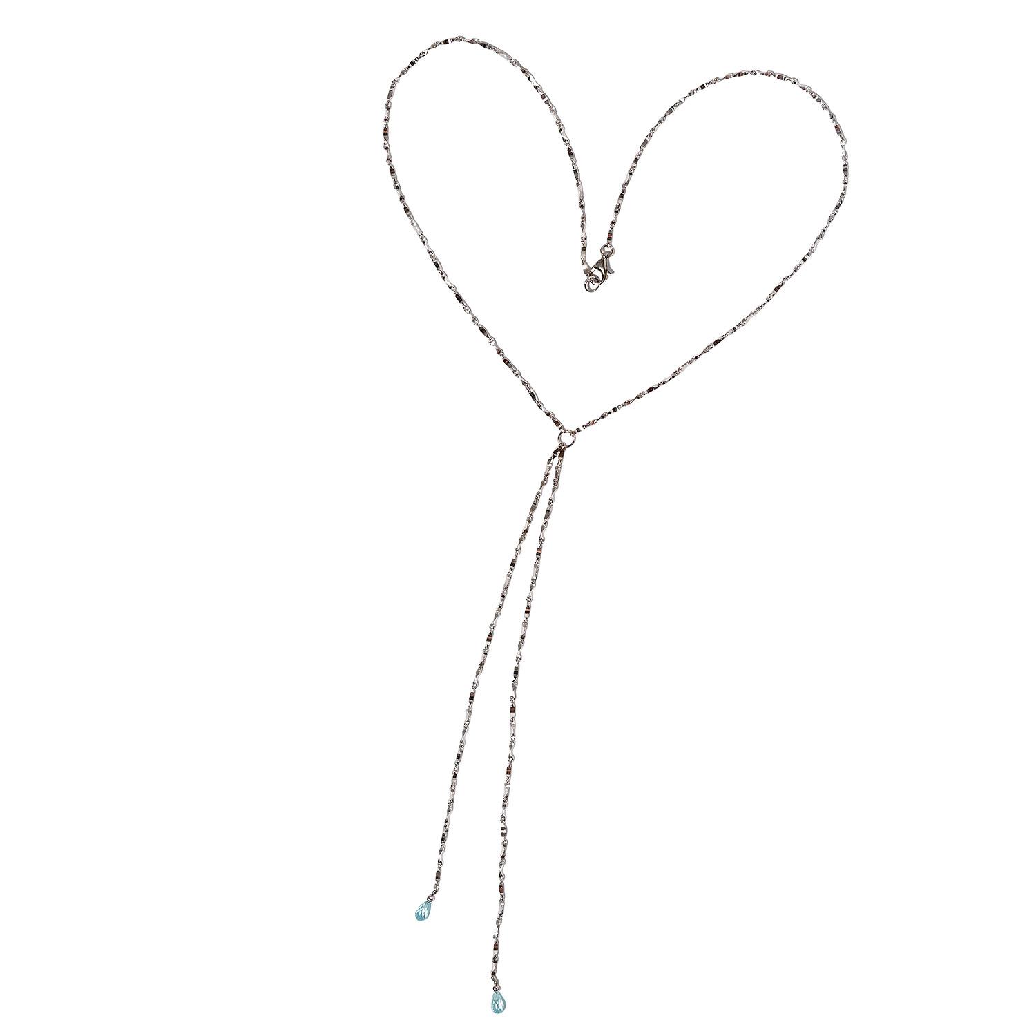 Modelnr. 95024TO Elegant og iøjnefaldende halskæde i rhodineret sterlingsølv, designet og håndlavet på vores værksted i Danmark. Halskæden fås i længderne 40, 42, 45 og 50 cm og har en smuk hamret og rustik overflade, der tilføjer et eksklusivt og unikt præg. Kæden er udformet som en Y-kæde med to forskudte kæder på henholdsvis 12 og 14 cm, hvilket giver et elegant fald og et moderne udtryk. I enderne sidder smukke, facetterede topas-sten, der tilfører klare blå nuancer og et raffineret farvespil. Et alsidigt smykke, der kan bæres både til hverdag og ved festlige lejligheder. ✓ Dansk design ✓ Fremstillet på vores eget værksted ✓ Rhodineret sterlingsølv ✓ Unik Y-formet kæde