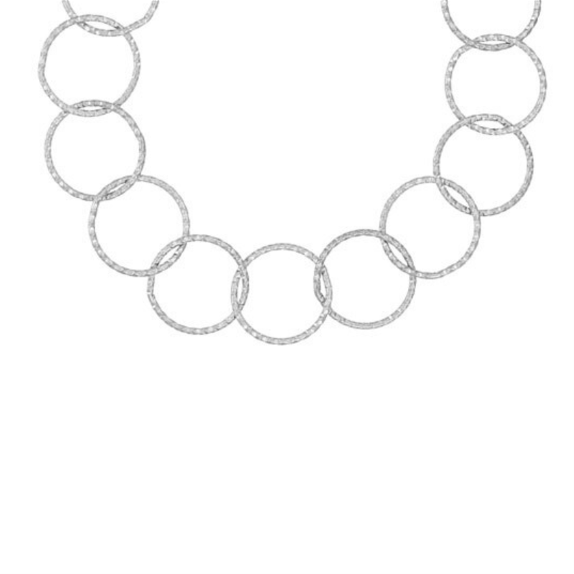 Smuk halskæde i stål med fine rustikke ringe. Halskæden er 42 cm + 3 cm forlænger.