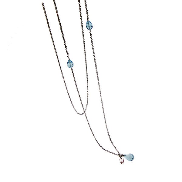 Halskæde i kombinationen af flotte Blå dråbe formede Topas sten og kæde der er facetteret også på siderne-så det ligner en række glimtende sten - meget spændende look, da den fremtræder med 2 farver efter facetteringen.Denne kæde er sterlingsølv/Rhodineret