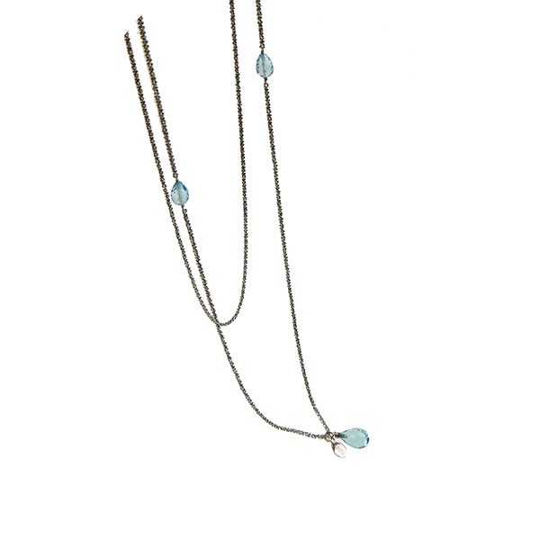 Halskæde i kombinationen af flotte Blå dråbe formede Topas sten og vores kæde  Dia-1505 med et meget spændende look.Denne kæde er sterlingsølv/Rhodineret