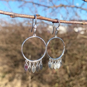 Beautiful earrings with 5 small "Dancing Leafs". The circles measure Ø 22 mm and have a nice little zirconia at the top. , Ø 22 mm