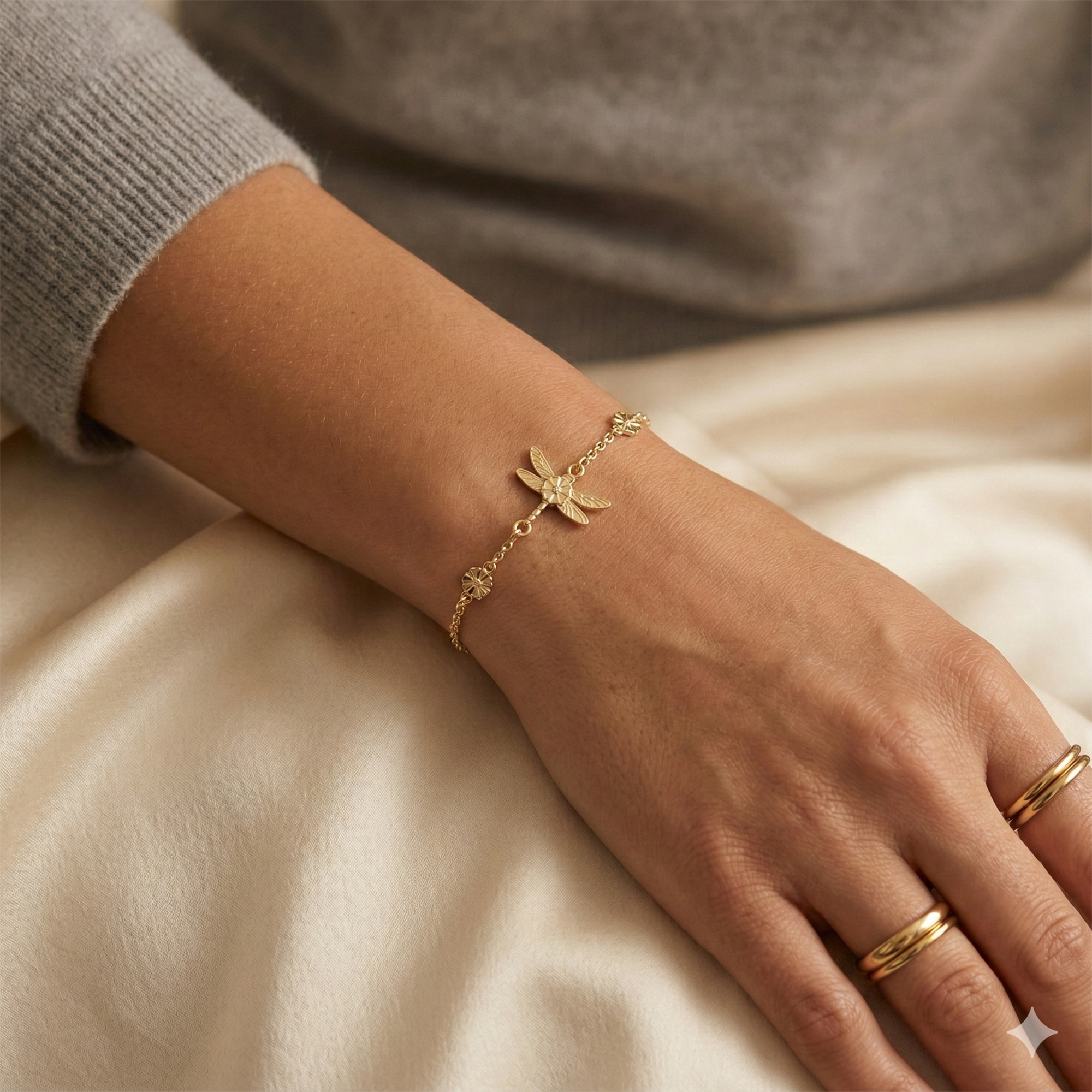 Marguerit Bracelet dragonfly 4x5mm gold plated 925 silver, 17-18-19cm