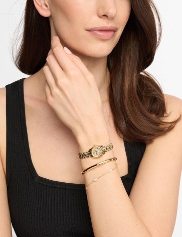 • Gold-tone stainless steel case and bracelet
