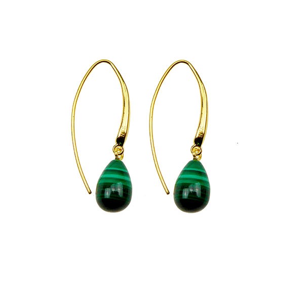 Øreringe - Forgyldt med Malakit 12x8mm Forgyldt pr.par from San - Links of Joy