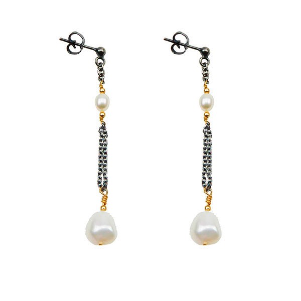 Øreringe i sterlingsølv m.9kt guld & ferskvandsperler Pr.par from San - Links of Joy