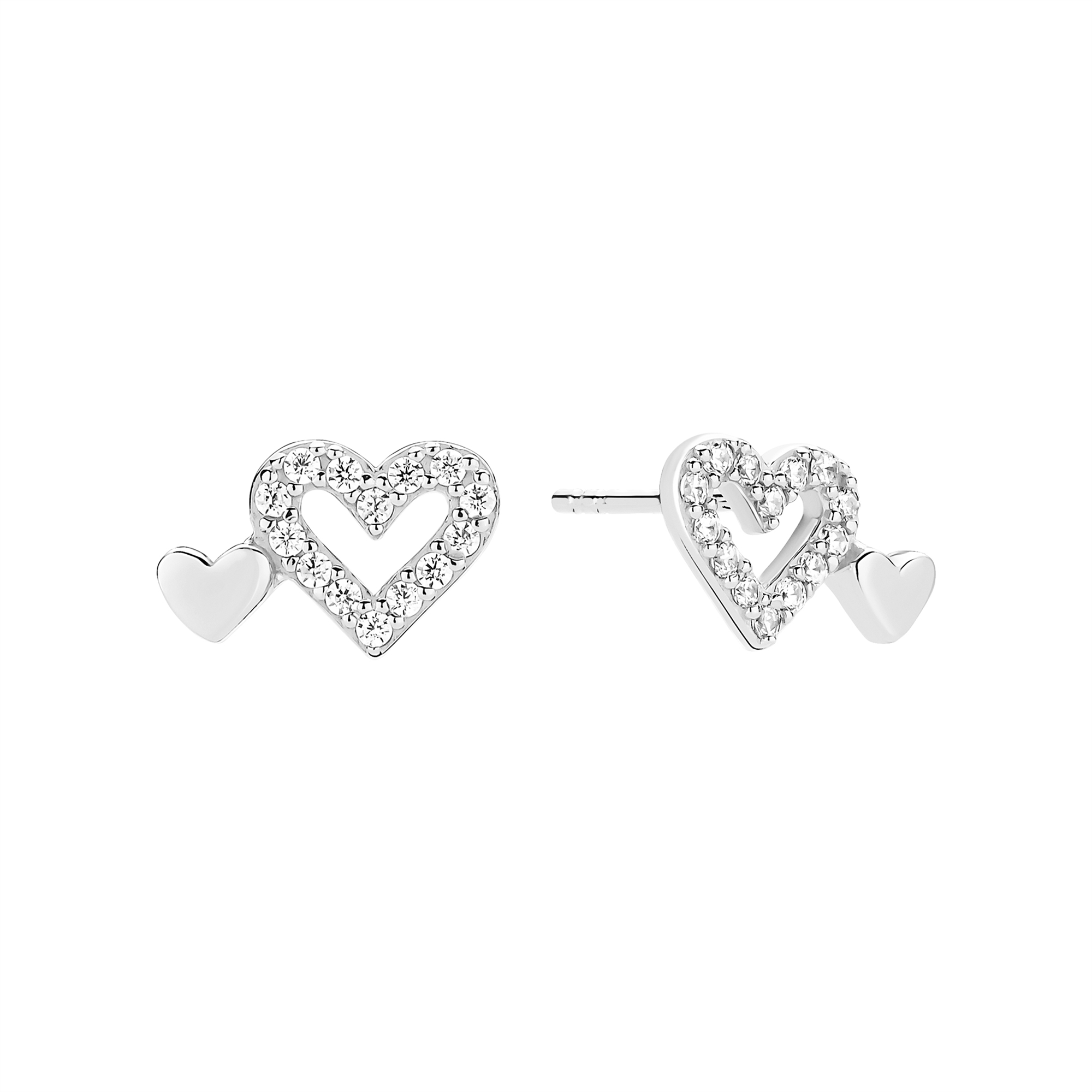 Ørestik dobbelt hjerte zirkonia sterling sølv