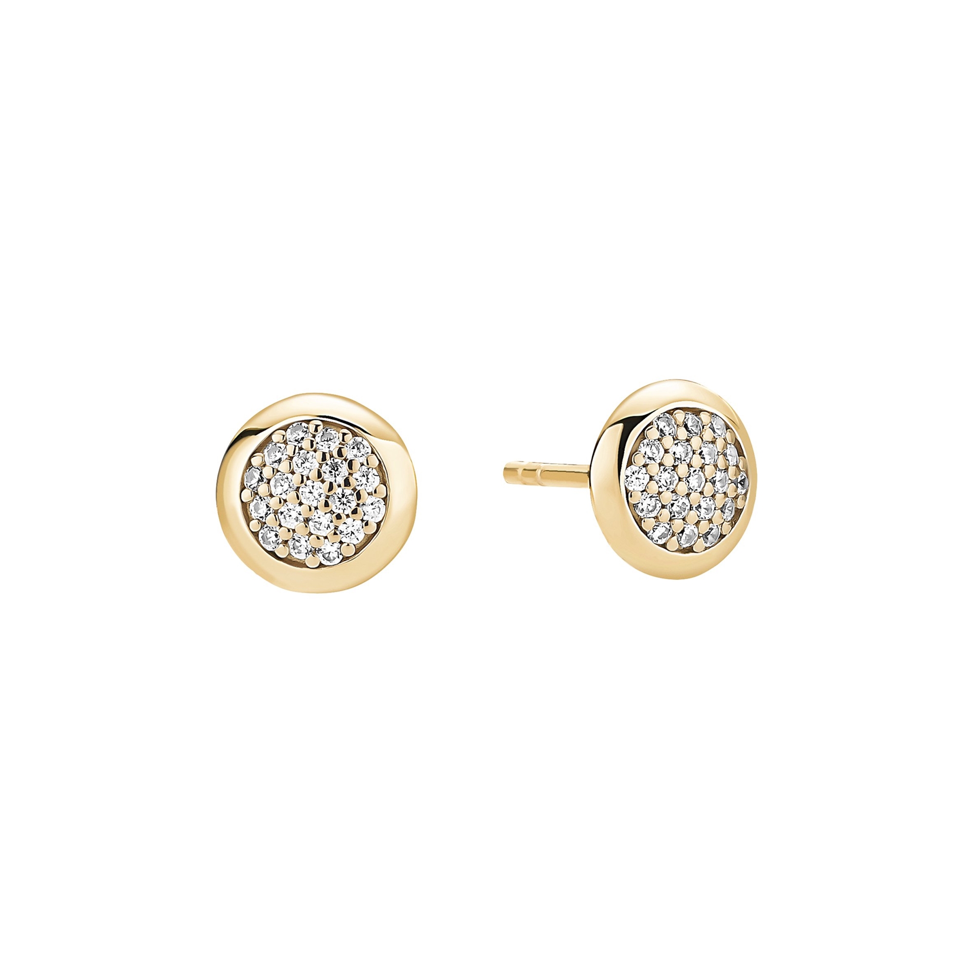 Crafted from gold-plated silver by Lund Copenhagen, these circular stud earrings combine a luxurious appearance with lasting quality. The expertly set zirconia stones create a sophisticated sparkle that elevates formal attire, while the classic design transitions seamlessly from daytime elegance to evening refinement.
