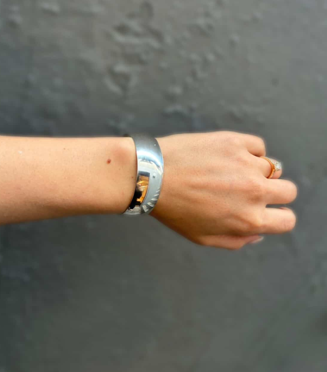 Beautiful, solid and durable 20 mm bangle from Randers sølv. Beautiful curved and wide design - falls in every taste!