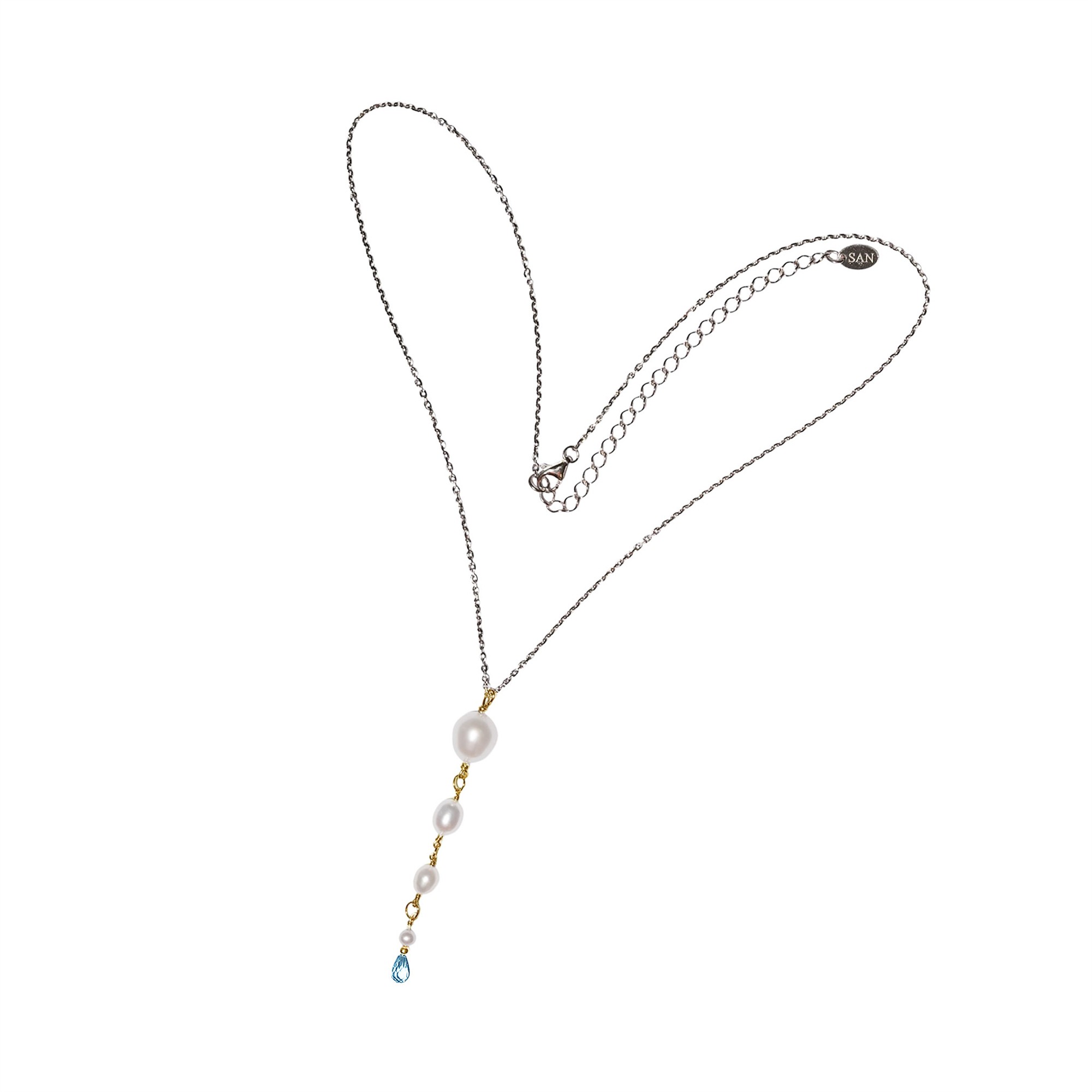 Rhodineret/forgyldt halskæde med ferskvandsperler & topas 42+8cm from San - Links of Joy