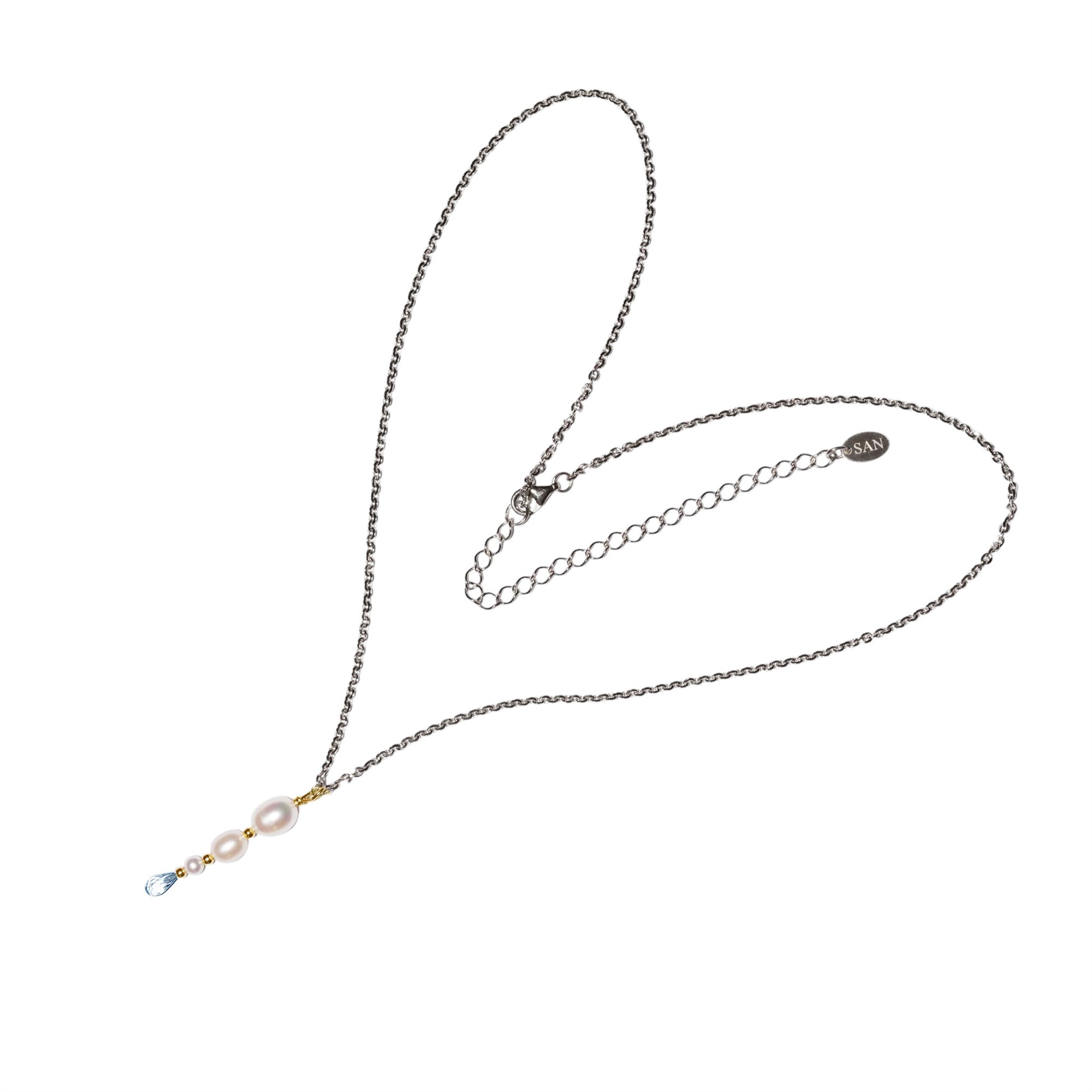 Rhodineret/forgyldt halskæde med Ferskvandsperler & Topas 42+8cm from San - Links of Joy