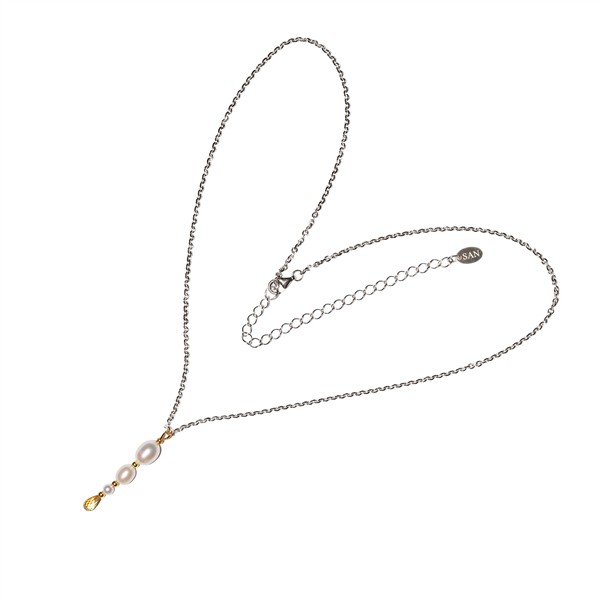 Rhodineret/forgyldt halskæde med ferskvandsperler & citrin 42+8cm from San - Links of Joy